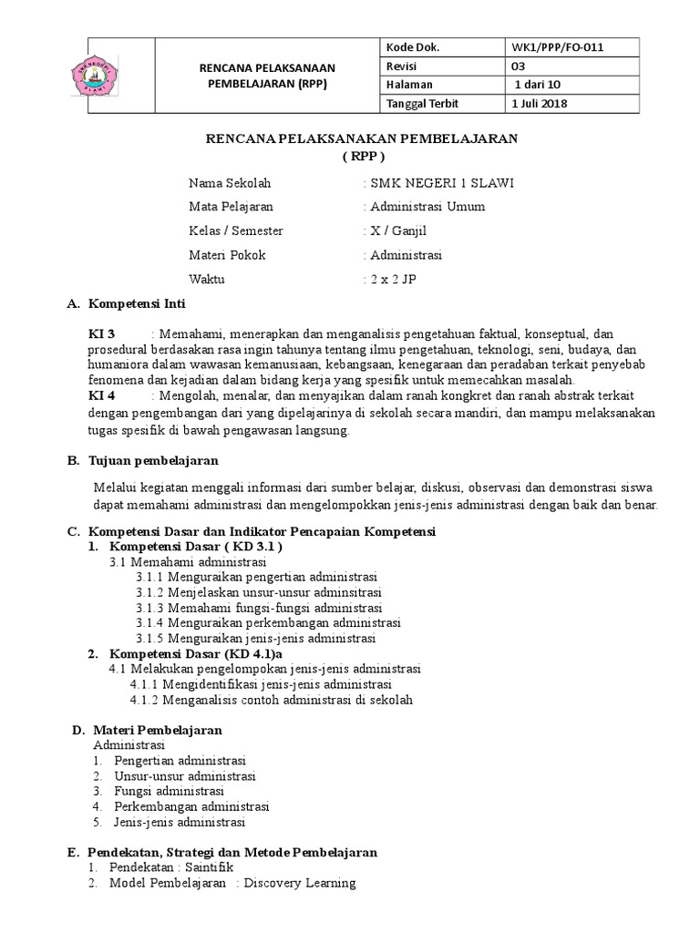 Silabus administrasi umum kompetensi keahlian administrasi perkantoran otomatisasi dan tata kelola perkantoran otkp silabus ini bersumber dari kikd mapel administrasi umum kurikulum 2013 edisi revisi 2017 yang resmi diterbitkan pada tanggal 9 juni 2017 oleh direktur jendral pendidikan dasar dan menengah kemdikbud dengan nomor. Pelajaran administrasi kepegawaian diajarkan selama 2 tahun pada kelas xi dan kelas xii. Silabus kurikulum 2013 smk jurusan administrasi perkantoran (ap) revisi 2017 ini memiliki perbedaan dengan silabus revisi 2016, dimana silabus revisi 2017 ini lebih fokus dalam meningkatkan hubungan atau. Rpp 1 lembar kearsipan kelas x smk kurikulum 2013 revisi 2020 contoh rpp 1 lembar kearsipan smk rpp kearsipan satu lembar smk kelas x rpp selembar kearsipan smk rpp kearsipan smk satu lembar rpp 1 halaman ma kearsipan kelas 10 rpp kearsipan rpp 1 lembar ruang lingkup administrasi kepegawaian contoh rpp yang baru untuk smk kelas xi kearsipan. Sikap kerja iii hasil : Rpp kurikulum 2013 administrasi perkantoran download rpp kurikulum 2013 smk administrasi perkantoran ulasan file dan info berikut ini adalah kumpulan dari berbagi sumber tentang download rpp kurikulum 2013 smk administrasi perkantoran yang bisa bapak ibu gunakan dan diunduh secara gratis dengan menekan tombol download biru dibawah ini, rpp. Materi admnistrasi keungan itu banyak sekali jika dipelajari, oleh sebab itu di sekolah khususnya smk kelas xi jurusan perkantoran, ada materi mengenai administrasi keuangan yang harus dikuasai oleh seluruh siswa. Rpp ap (administrasi perkantoran) smk kelas x, xi, xii kurikulum 2013 lengkap tahun 2017 ini merupakan file terbaru yang akan kami bagikan pada kesempatan kali ini,khususnya bagi anda yang mengampu mata pelajaran ap (administrasi perkantoran). Sobat tugas kuliahku, kali ini saya akan membagikan rencana pelaksanaan pembelajaran (rpp) mata pelajaran pengantar administrasi perkantoran yang sudah disesuaikan dengan kurikulum 2013.rpp yang sudah tersedia ini mengacu kepada silabus yang telah ditetapkan oleh kementerian pendidikan dan kebudayaan sehingga sesuai dengan target dan sasaran. Perkantoran kurikulum 2013 sangat berbeda dengan mata pelajaran menggunakan ktsp.