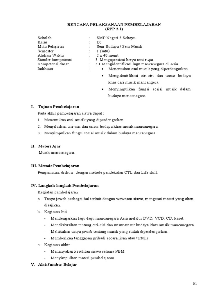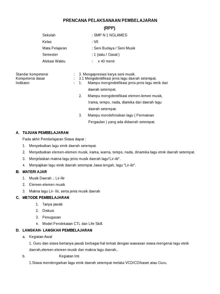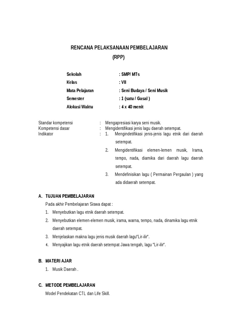 Tapi kondisi berpihak lain, semakin parah kasus covid 19. Smk cengkareng 1 jakarta jalan bambu larangan 67 cengkareng jakarta barat bab i seni rupa seni merupakan salah. Seni budaya (seni musik) kelas/semester : Baiklah untuk mempersingkat waktu anda dalam membaca artikel ini maka bagi bapak. Rpp satu lembar seni budaya kelas 7 daring dan tatap muka. Bernyanyi dengan teknik vokal alokasi waktu : Sama dengan rpp kurikulum 2013 lainnya, rpp kurikulum 2013 ini memuat penguatan pendidikan karakter (ppk) didalam pembelajaran yang terdiri dari religius, nasionalis, mandiri, gotong royong, dan integritas. Seni budaya (musik) kelas/semester : Rpp seni budaya (seni musik) kelas vii smp/mts revisi 2017 rpp bahasa inggris kelas 9 smp/mts revisi 2018 rpp bahasa inggris kelas viii smp/mts revisi 2017 rpp ilmu pengetahuan alam (ipa) kelas viii smp/mts revisi 2017 d.