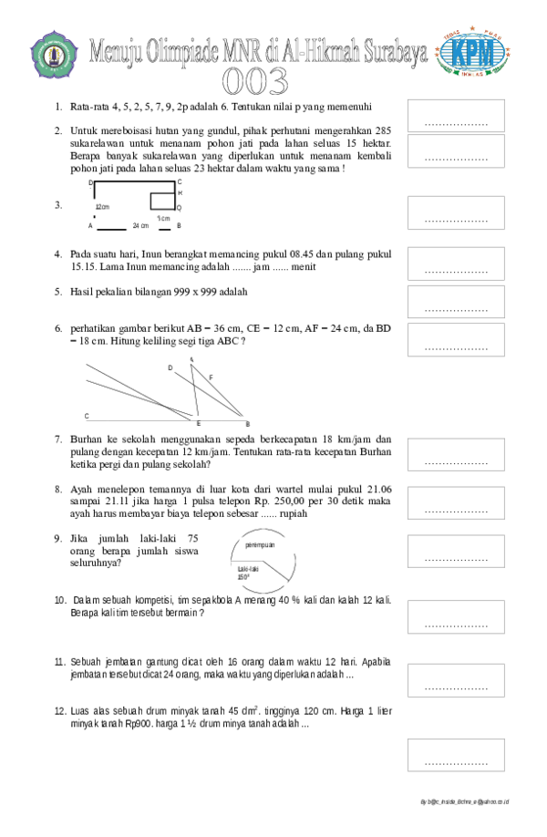 Shalawat serta salam semoga tetap tercurahkan kepada junjungan kita,. Hal tersebut membuat siswa kurang terasah penalarannya dan membuat siswa semakin. Kmnr merupakan salah satu ajang lomba matematika yang bergengsi di indonesia. Kpmseikhlasnya instagram posts photos and videos picukicom. Lomba atau kompetisi ini diselenggaran oleh kpm (klinik pendidikan mipa) tiap tahunnya dari tahun 2006 hingga. Kunci jawaban soal semi final kompetisi matematika realistik sd, smp, dan sma tahun 2019 belum bisa kami miliki. Soal matematika kelas 1 sd bangun ruang. Dengan menggunakan pendekatan matematika realistik dari kelas 3 (tiga) sekolah. Matematika nalaria realistik (mnr) is an innovation in learni ng mathematics.