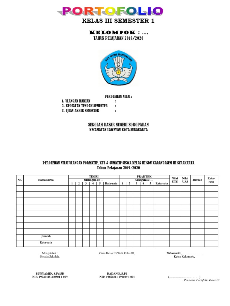 Format Penilaian Portofolio KTSP SD Kelas 3 Sem 1 from www.scribd.com